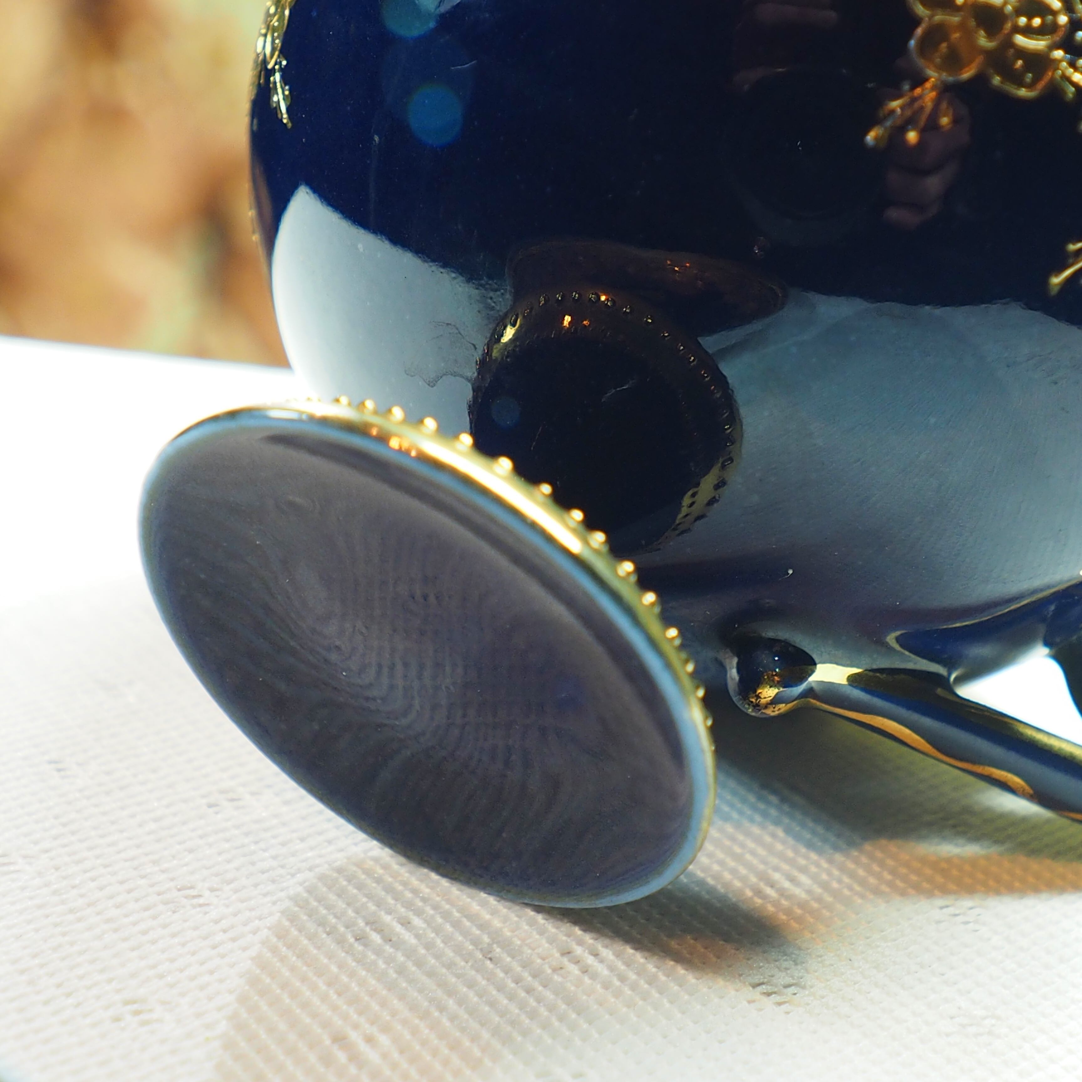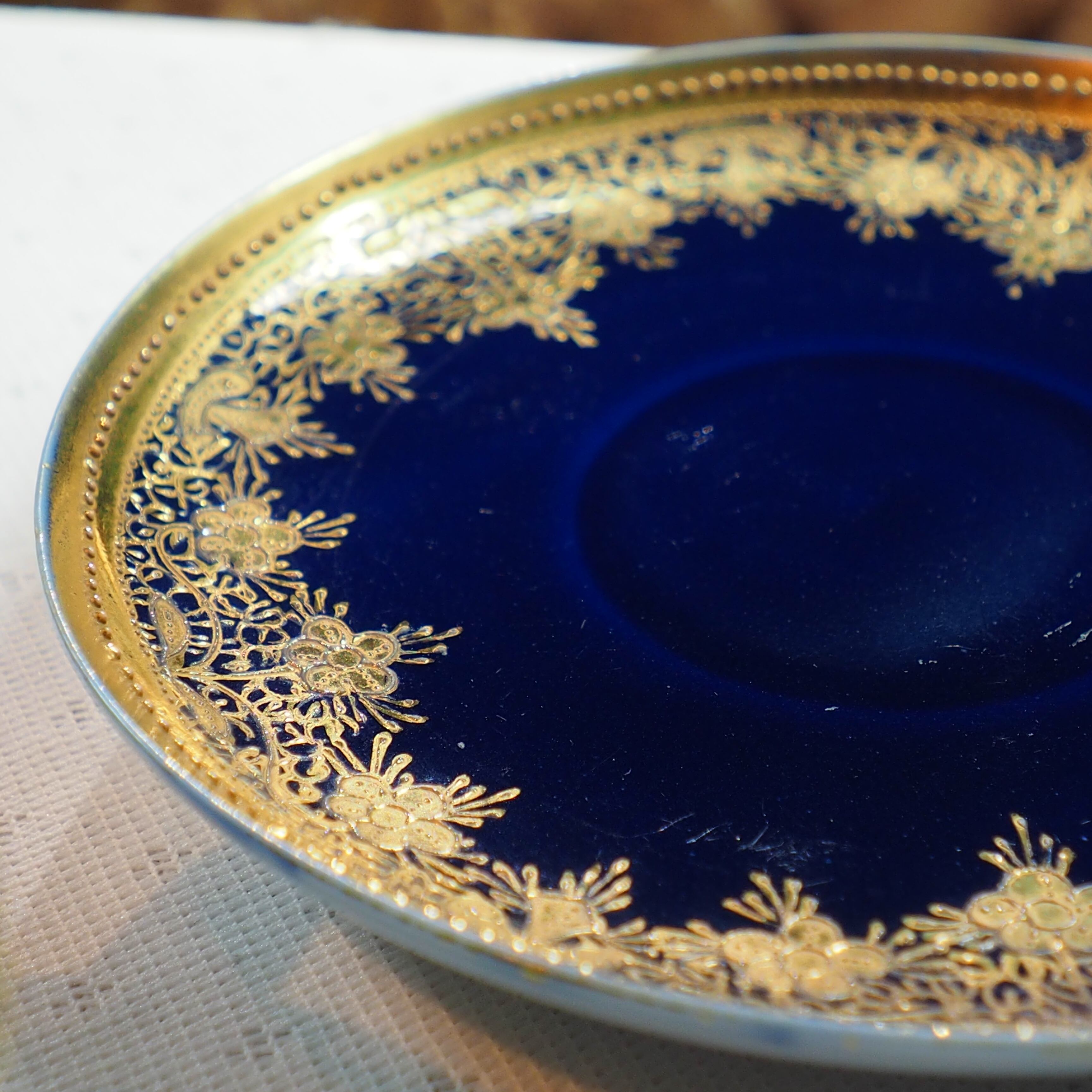 オールドノリタケ 金盛藍線帯華装飾紋 メイプルリーフ印 ペディスタル 里帰り
