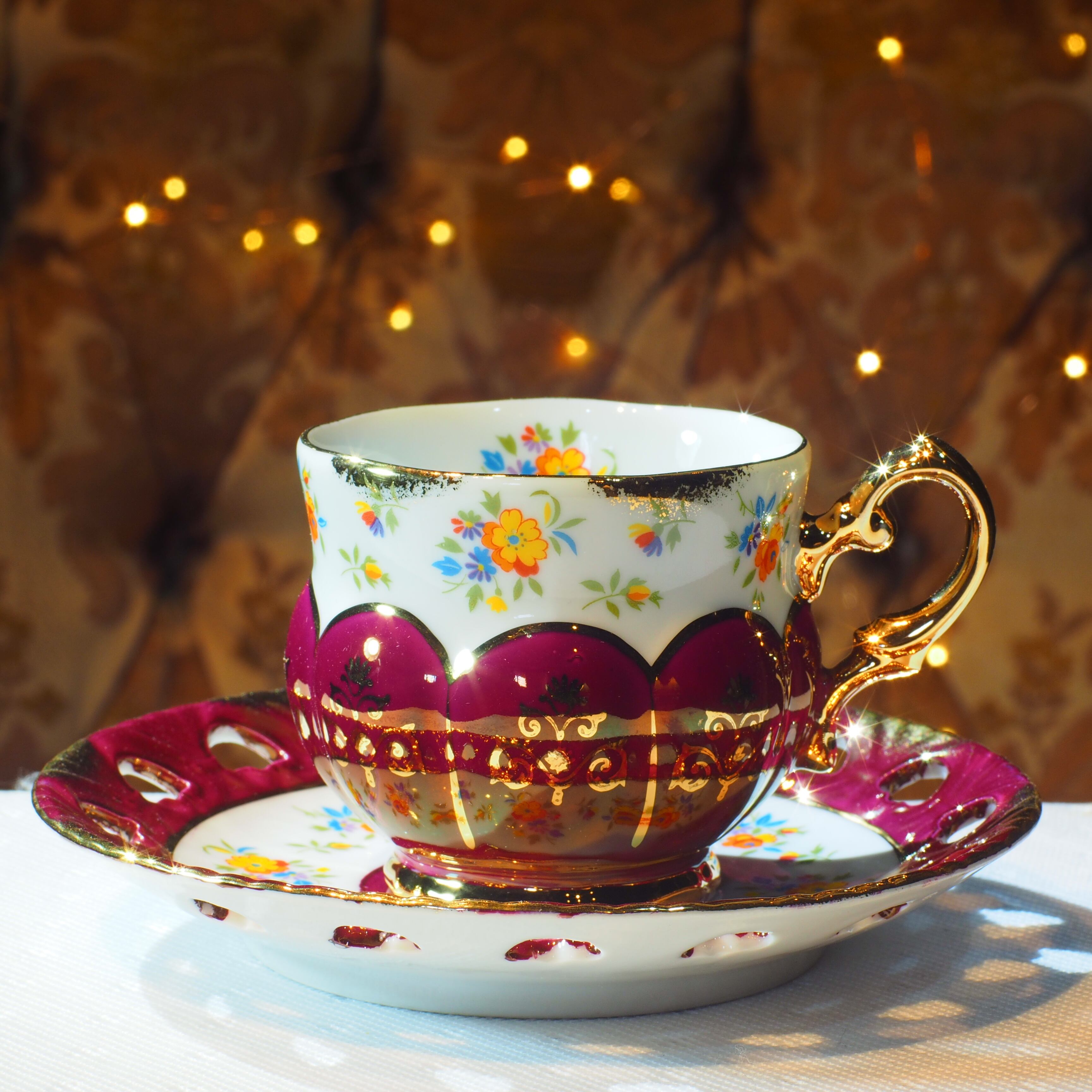 大橋陶器 デミタスカップ レトロ ゴールデンファンタジー 小花 金彩 エンジ