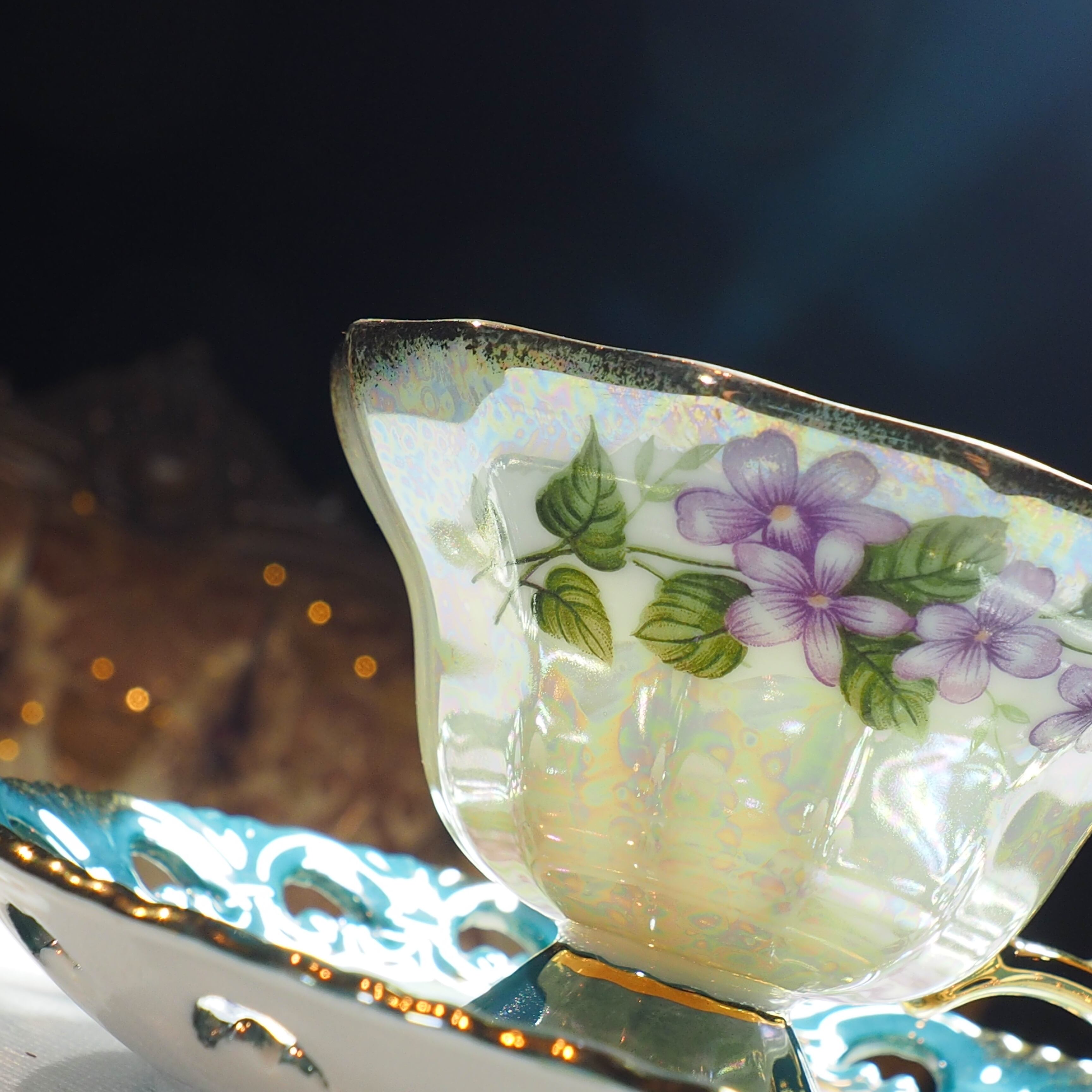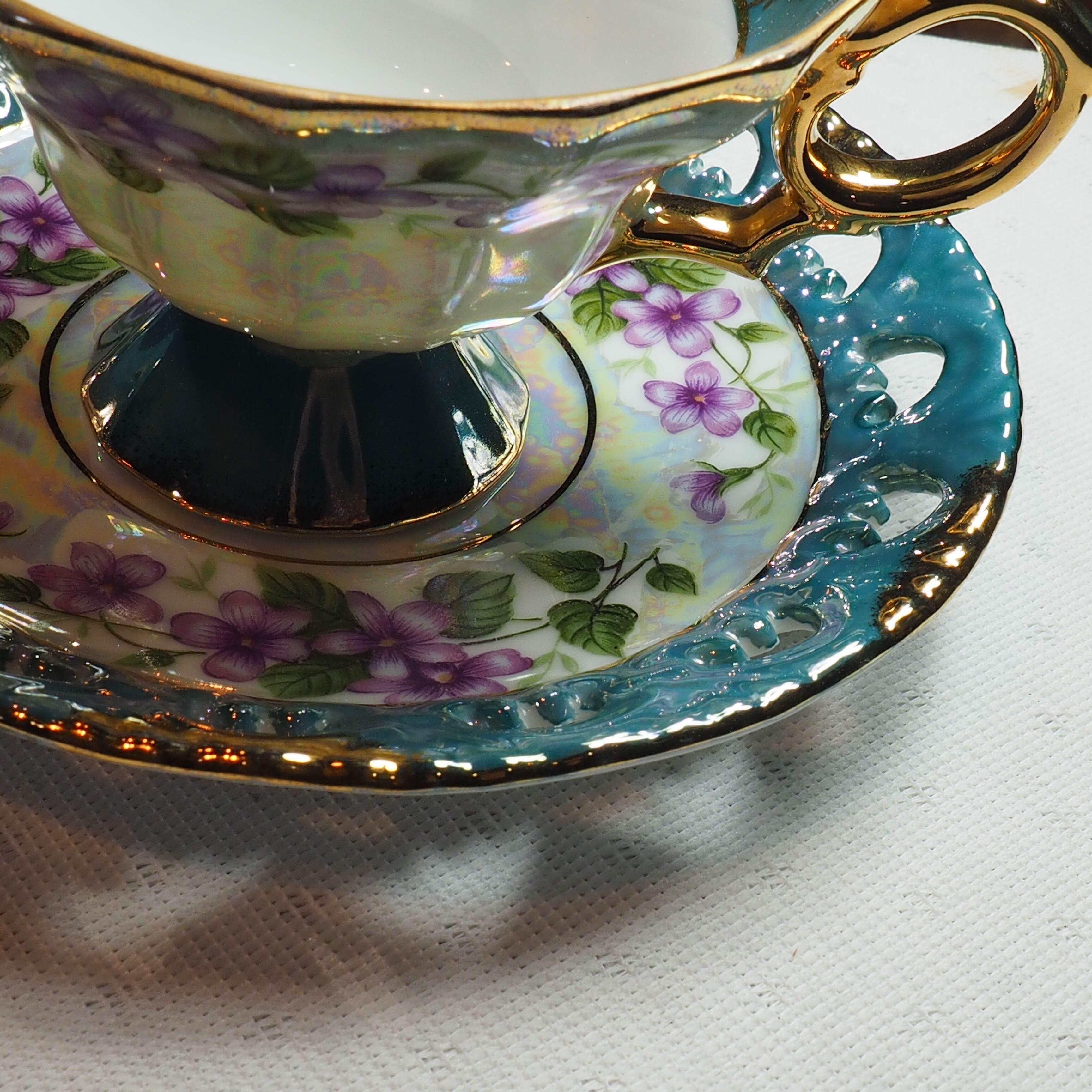 セーエー陶器 ティーカップ 日本製 金彩 オーロラ レトロ すみれ
