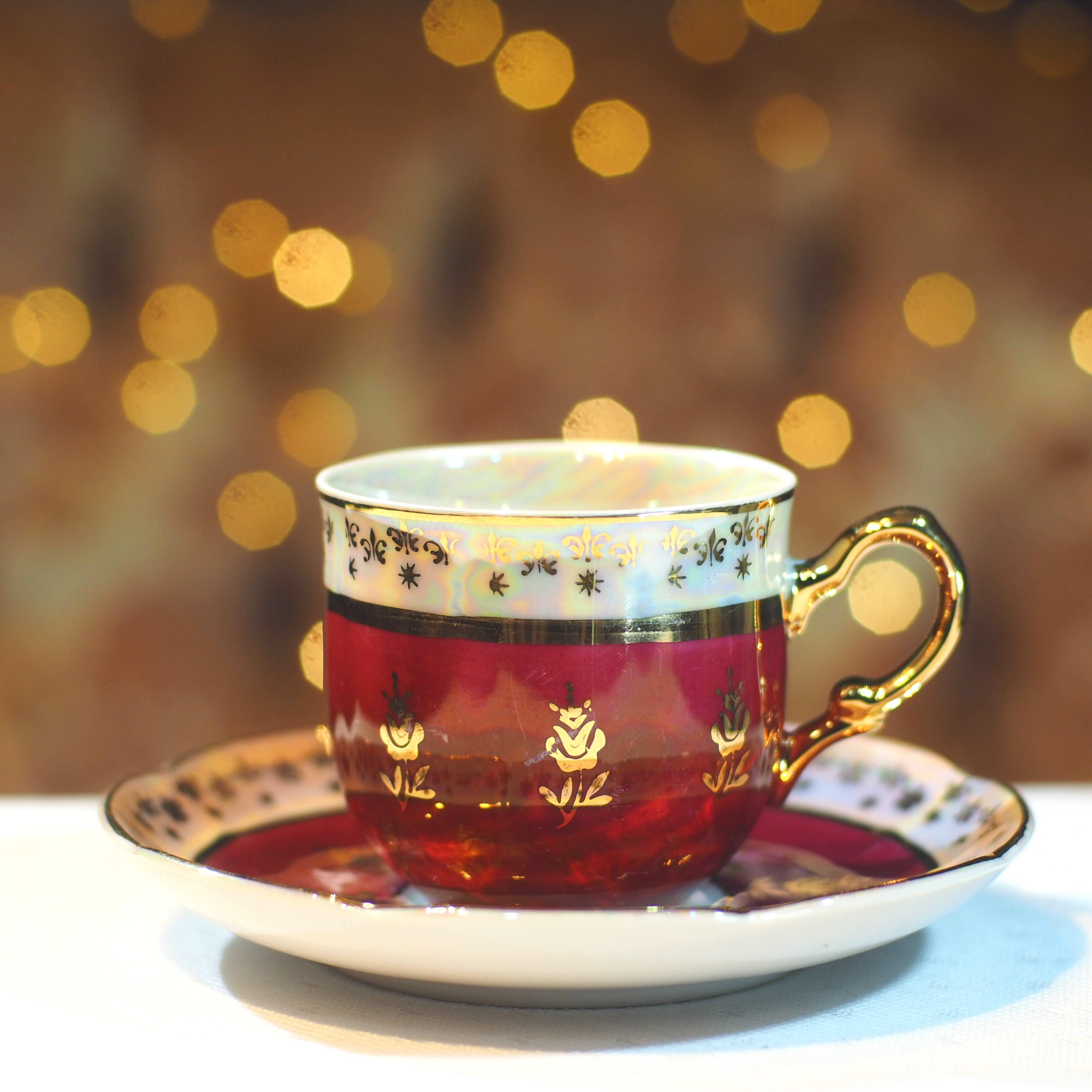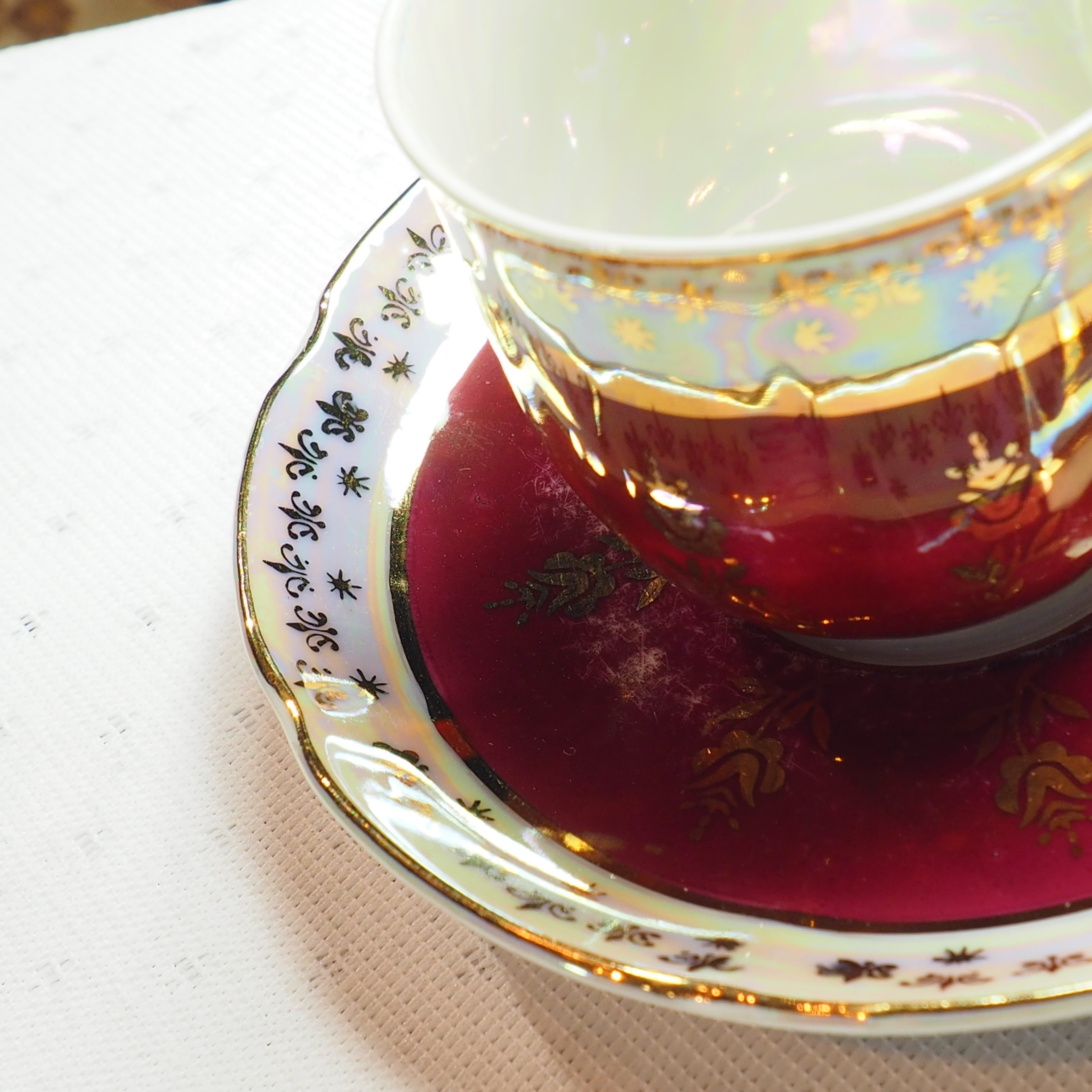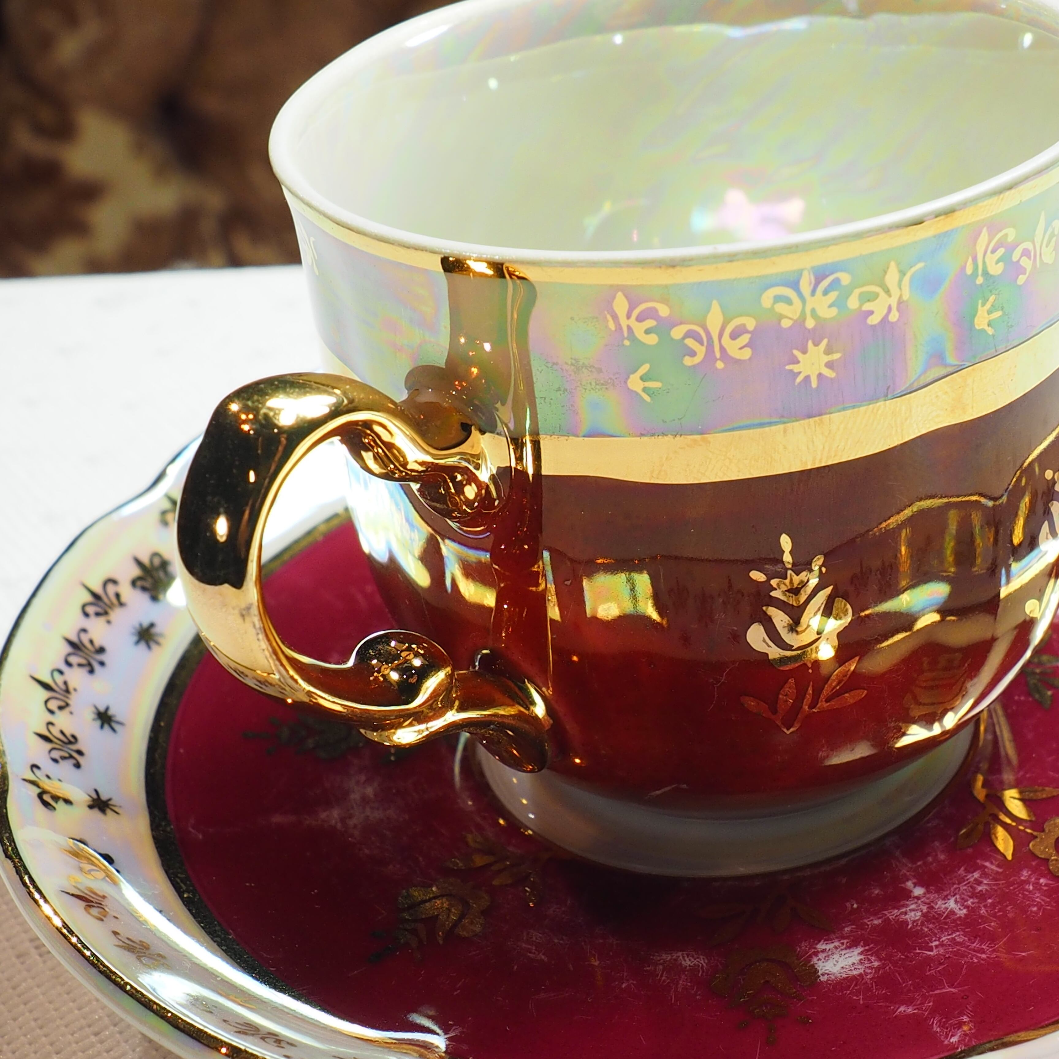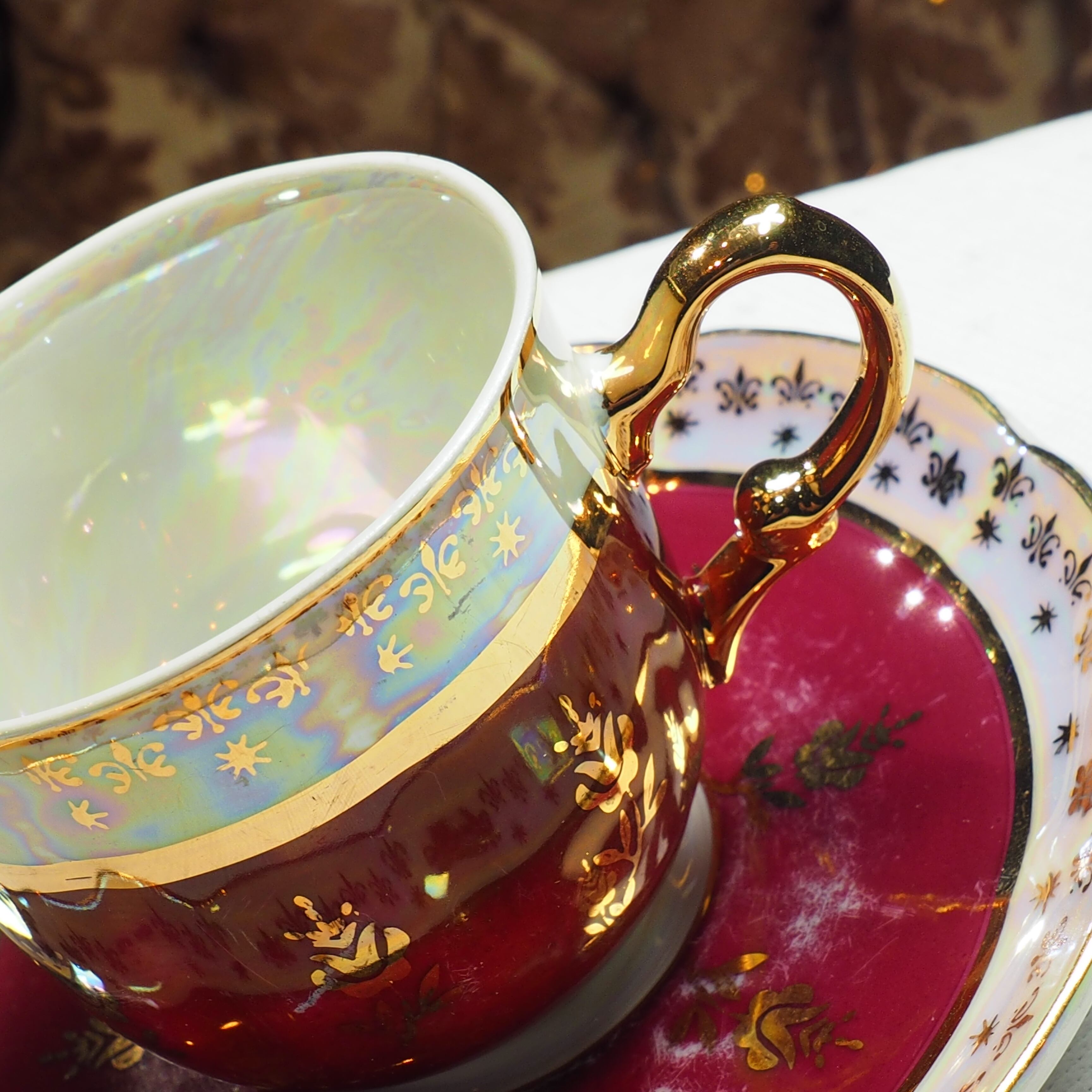 セーエー陶器 デミタスカップ 日本製 金彩 オーロラ レトロ エンジ